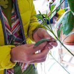 In Auseinandersetzung mit der Bewegung des Urban-gardening wurden lebende Pflanzen und getrocknete Blätter mit Kernbegriffen der Szene und mit relvanten Internetadressen bestickt